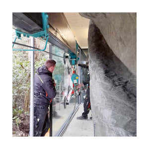 As a rule, the suction cup has an operating time of approx. 8 hours . The suction unit can be rotated 360 degrees and tilted 90 degrees if necessary and can be used on almost any construction site.
