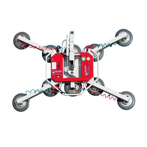 Special attention was paid to the development of the suction cups, which have an enormously high adhesion and are characterized by a long service life. During the suction process, it is important that the object to be lifted has a smooth, flat and air-tight surface. The suction process takes place directly on the unit. Optionally, the operator can control the suction process via a radio remote control. The suction cup independently monitors the vacuum pressure and, if necessary, pumps again by itself. The user is also warned acoustically in the event of an impending loss of vacuum. Power is supplied independently of the mains via the integrated battery.